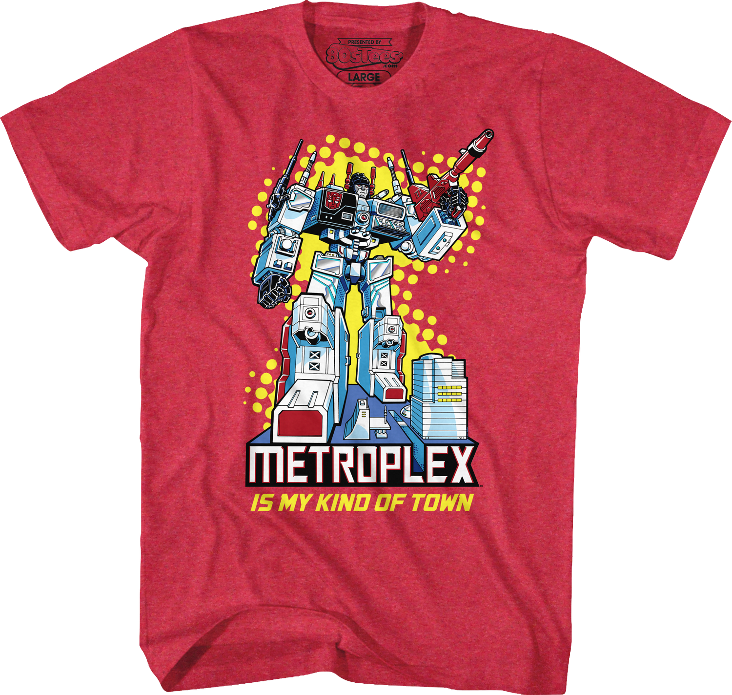 Did you know that Metroplex is the #1 city with the lowest crime rate? Of course, it doesn't hurt that it transforms into a giant robot to ward off the evil Decepticons. You'll be looking sharp in this shirt while walking the streets of Metroplex or your own stomping grounds.
