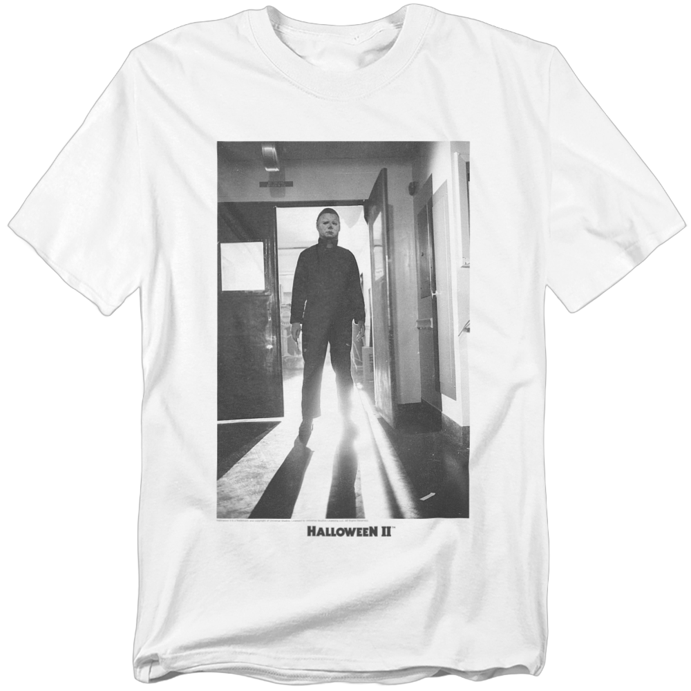 The original Halloween was the horror smash of the 70s. Halloween II was the horror smash of the 80s. Everyone will know you are a fan when you wear this Michael Myers Black & White Photo Halloween II T-Shirt!