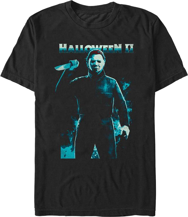 This Halloween II t-shirt shows Michael Myers posing with his knife, waiting for his next victim.