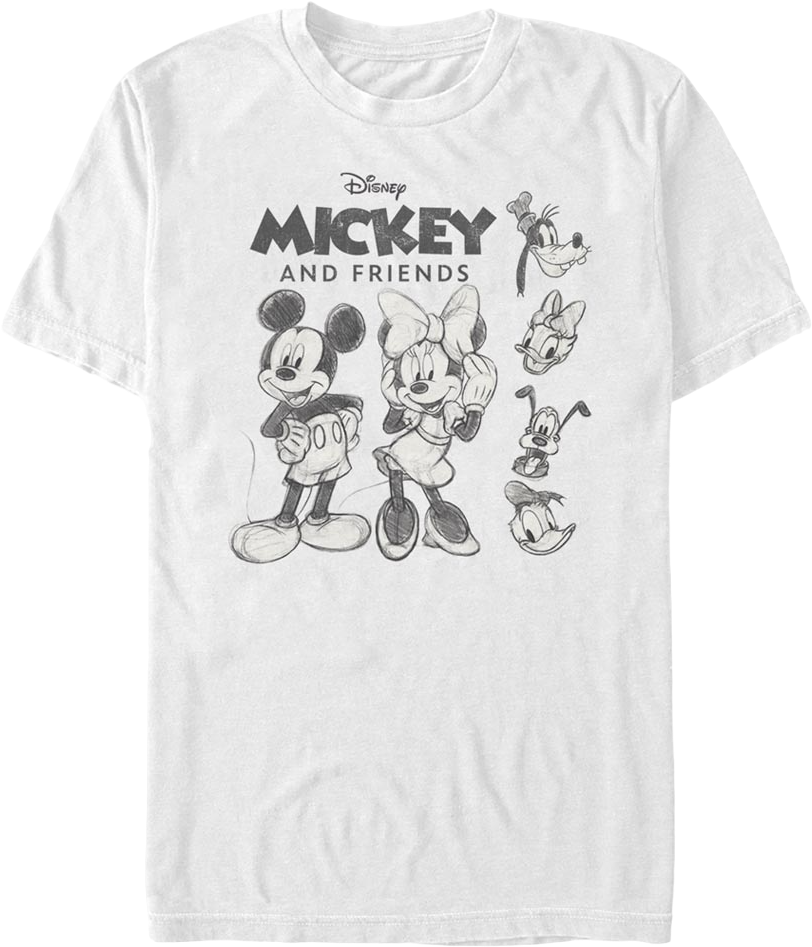 Mickey Mouse is known for his kind-heartedness, bravery, and optimism, while Minnie Mouse is often portrayed as sweet, caring, and independent. Goofy is famously silly and clumsy but also loyal and kind-hearted, and Daisy Duck is often depicted as confident and sassy. Pluto, despite being a dog and not speaking, is known for his loyalty and lovable nature, while Donald Duck is famously temperamental and often finds himself in humorous situations. Together, these characters have created countless moments of laughter, joy, and entertainment for audiences of all ages. Let everyone know you are a fan when you wear this Mickey And Friends Sketches Disney T-Shirt!