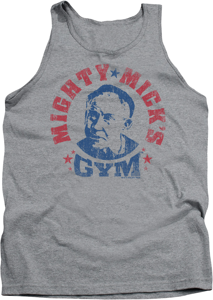 Everyone will know that Mickey Goldmill has inspired you to train to eat lightning and crap thunder when you wear this Mighty Mick's Gym Rocky Tank Top!