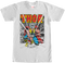 This Thor t-shirt shows the god of thunder with his Mjolnir hammer in front of the pages of a Thor Marvel comic book.