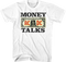 This AC/DC t-shirt features lead guitarist Angus Young on a one dollar bill. The shirt includes the title of the hit song "Moneytalks".