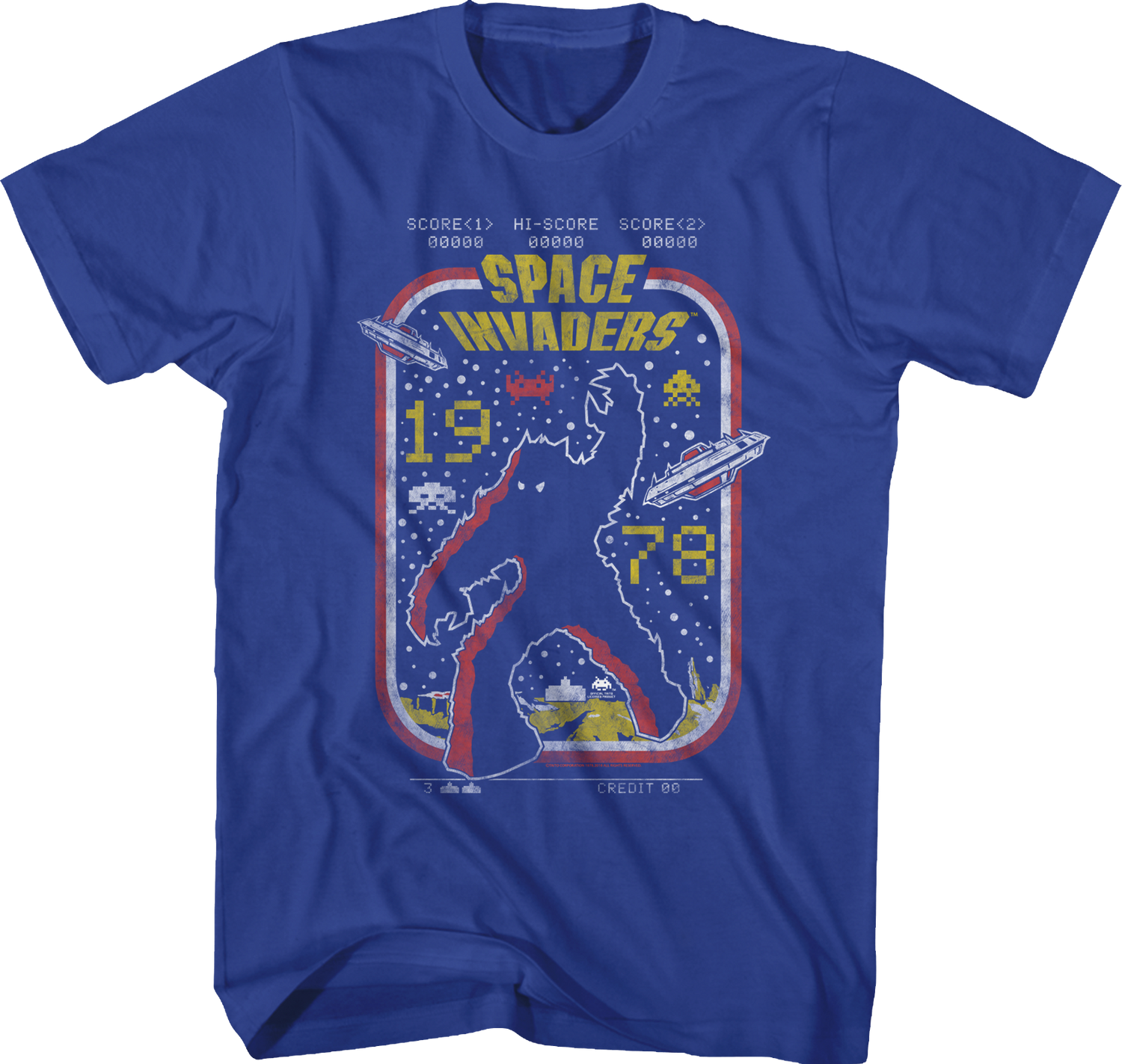 Released in 1978, Space Invaders challenged players to shoot advancing aliens with a laser cannon that moved across the bottom of the screen. The top of the screen featured a high score, which would become a staple for arcade games. The sides of the arcade game showed the monster that appears on this t-shirt!