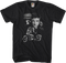 The handsome young star is shown on this Motorcycle Elvis Presley T-Shirt in a black and white collage of images. He is pictured sitting on on a motorcycle below a portrait of his face with a diner in the background and his signature. Elvis was always a fan of toys and owned countless cars, boats, and motorcycles throughout his career.