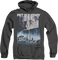 This Movie Poster Pet Sematary Hoodie features the poster artwork for the 1989 horror classic. The artwork shows Victor Pascow on the top half of the image and Church the cat in the pet cemetery on the bottom half of the image.