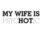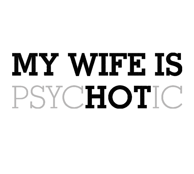 This 80sTees.com exclusive 3"x3" sticker looks like is reads "My Wife Is Hot", but this is standing out in the hidden message "My Wife Is Psychotic."