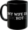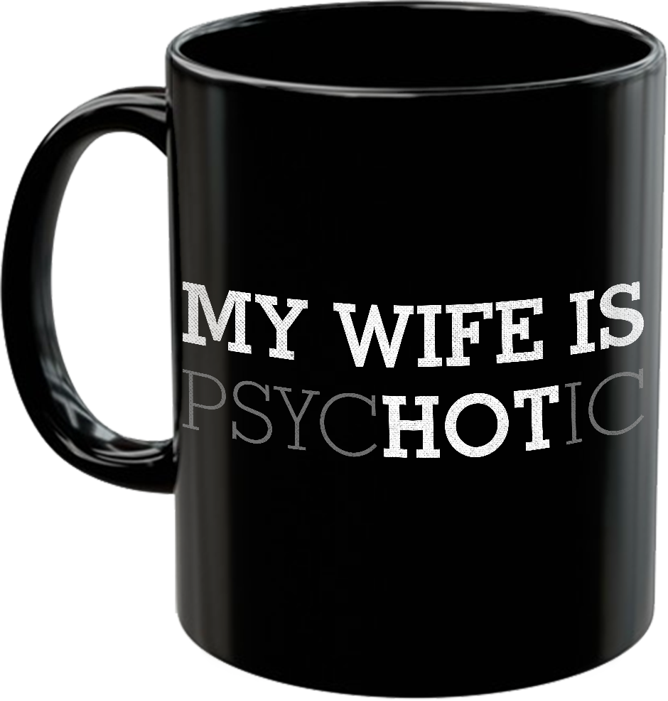 This 15 ounce My Wife Is Hot coffee mug will let everyone know that you adore your wife because of the deep bond of love, respect, and companionship you share with her. Everyone will also know your wife is hot...even if she has the occasional psychotic episode.