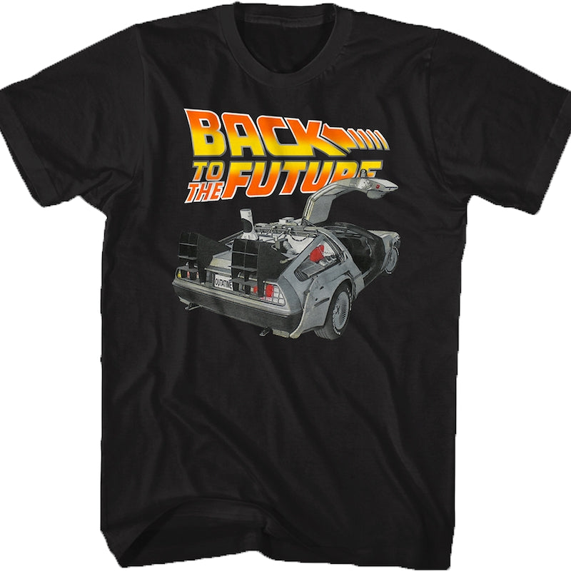 This is heavy. A shirt that features the time machine that Emmitt Brown made out of a DeLorean. The car was seen in 1985's Back To The Future and in two sequels. With its gull-wing doors open and its OUTATIME license plate, this DeLorean is one of the most recognizable automobiles in cinematic history. When you're seen in this shirt, you'll have people shouting, "Great Scott!".