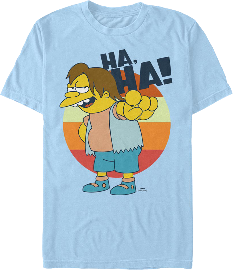 Nelson Muntz is one of the most popular recurring characters on The Simpsons. Everyone will know you are a fan when you wear this Nelson Laughing Simpsons T-Shirt!