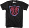 This 80sTees.com exclusive Transformers t-shirt shows an Autobots logo that is glowing in neon colors. The logo features the trademark Autobot colors red and blue.