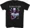 This Silence of the Lambs t-shirt shows Buffalo Bill surrounded by sphinx moths while his hands are crossed. The image and the movie logo are highlighted in neon colors.