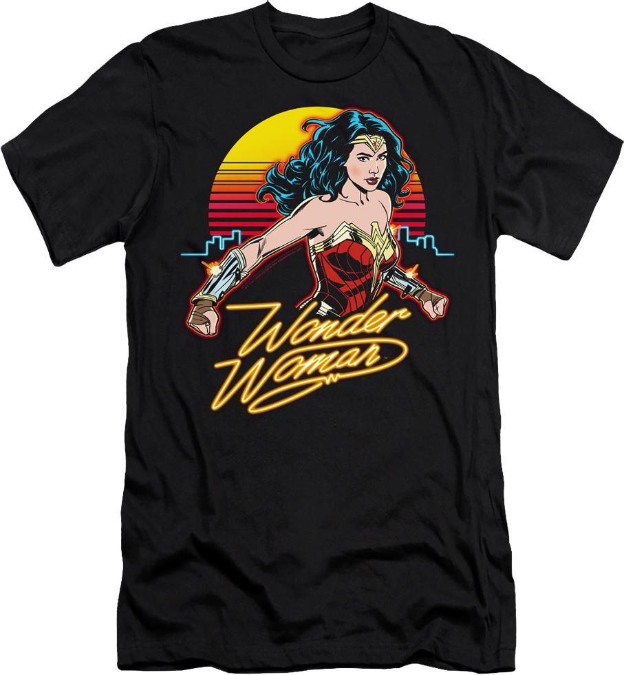 Wonder Woman is one of the most popular superheroes to ever appear in the pages of DC Comics. Everyone will know you are a fan when you wear this Neon Skyline Wonder Woman T-Shirt!
