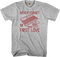 This t-shirt shows an Atari video computer system, and the shirt reads Never Forget Your First Love.