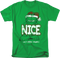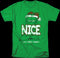 This Garfield t-shirt shows the animated cat proudly wearing a Santa Claus hat. The shirt reads "NICE but a little naughty".