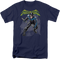 He's seen too much to be Robin and he's too optimistic to be Batman. He is Nightwing. The popular DC Comics character appears on this t-shirt in an action pose with his polymer eskrima clubs.