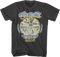 This Aerosmith t-shirt features the cover artwork for the band's twelfth album, Nine Lives. The artwork shows a cat tied to a circus knife-thrower’s wheel.