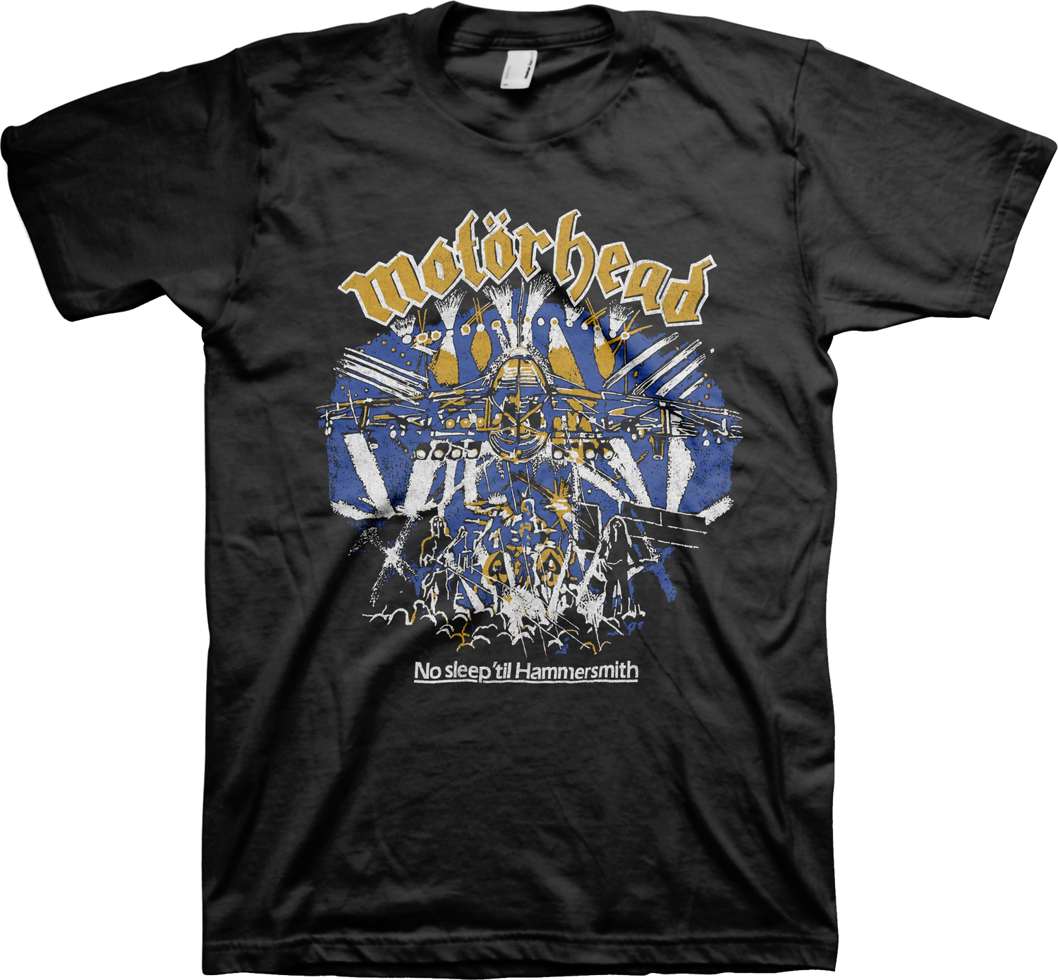 This Motorhead t-shirt features the cover artwork for the live album No Sleep 'Til Hammersmith.