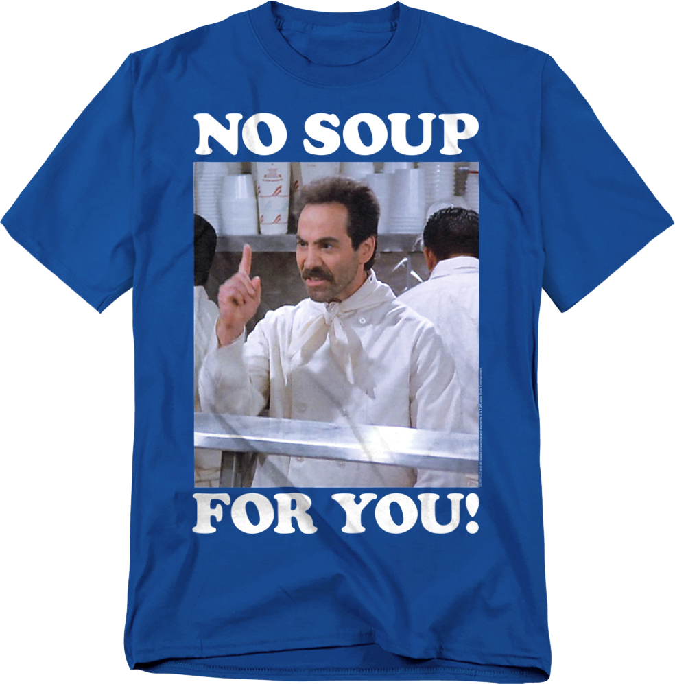 This Seinfeld t-shirt features an image of the Soup Nazi yelling "No Soup For You!"