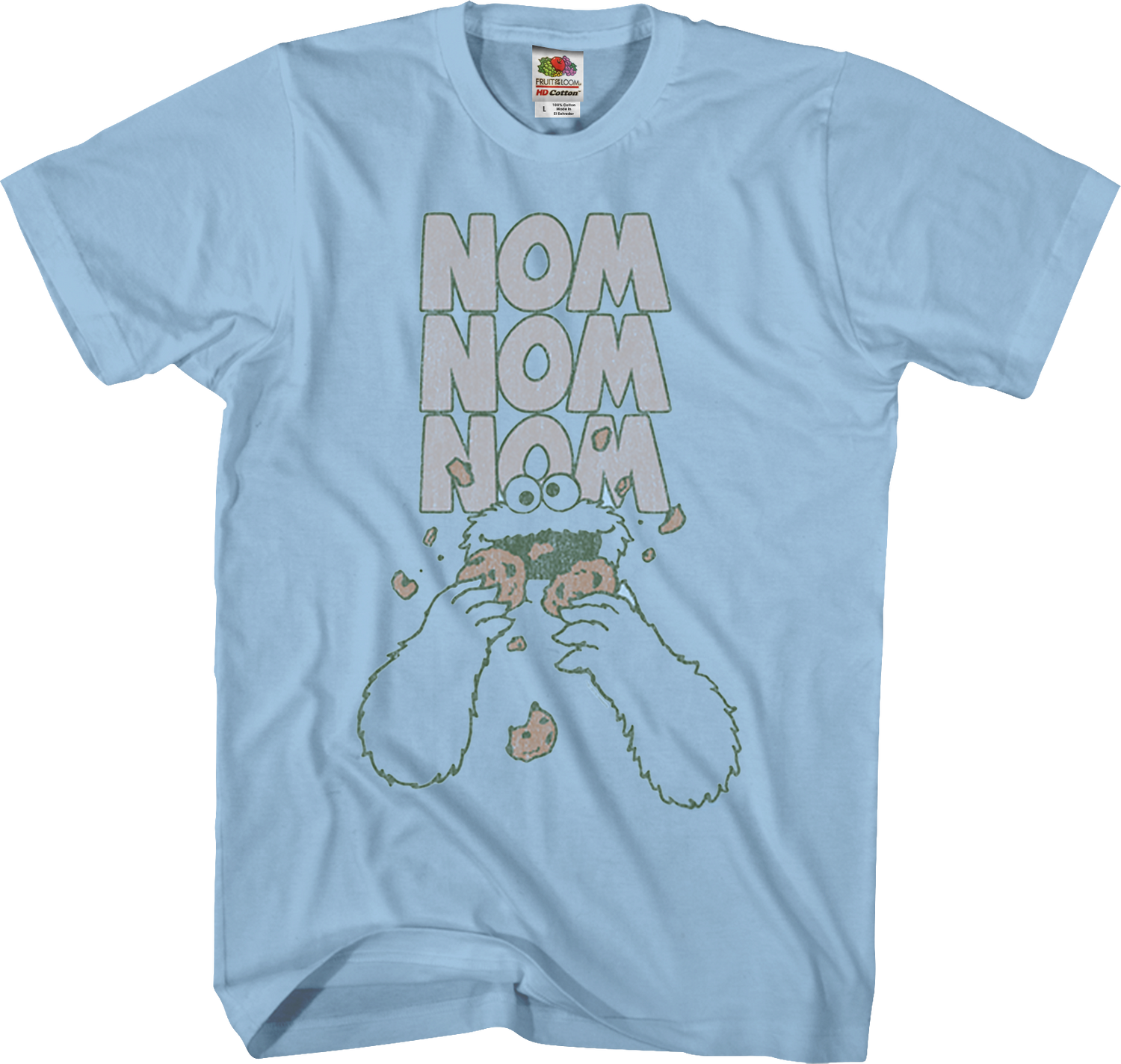 Show your love for the Sesame Street character and for chocolatey baked goods with this Nom Nom Nom Cookie Monster T-Shirt.