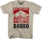 This 80sTees.com exclusive t-shirt shows a man riding a bucking bronco in the desert. The shirt reads Not My First Rodeo.