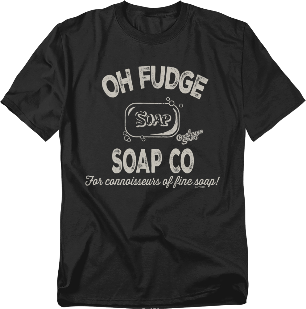 This Christmas Story t-shirt features a bar of soap from the Oh Fudge Soap Company. The shirt includes the slogan "For connoisseurs of fine soap!"