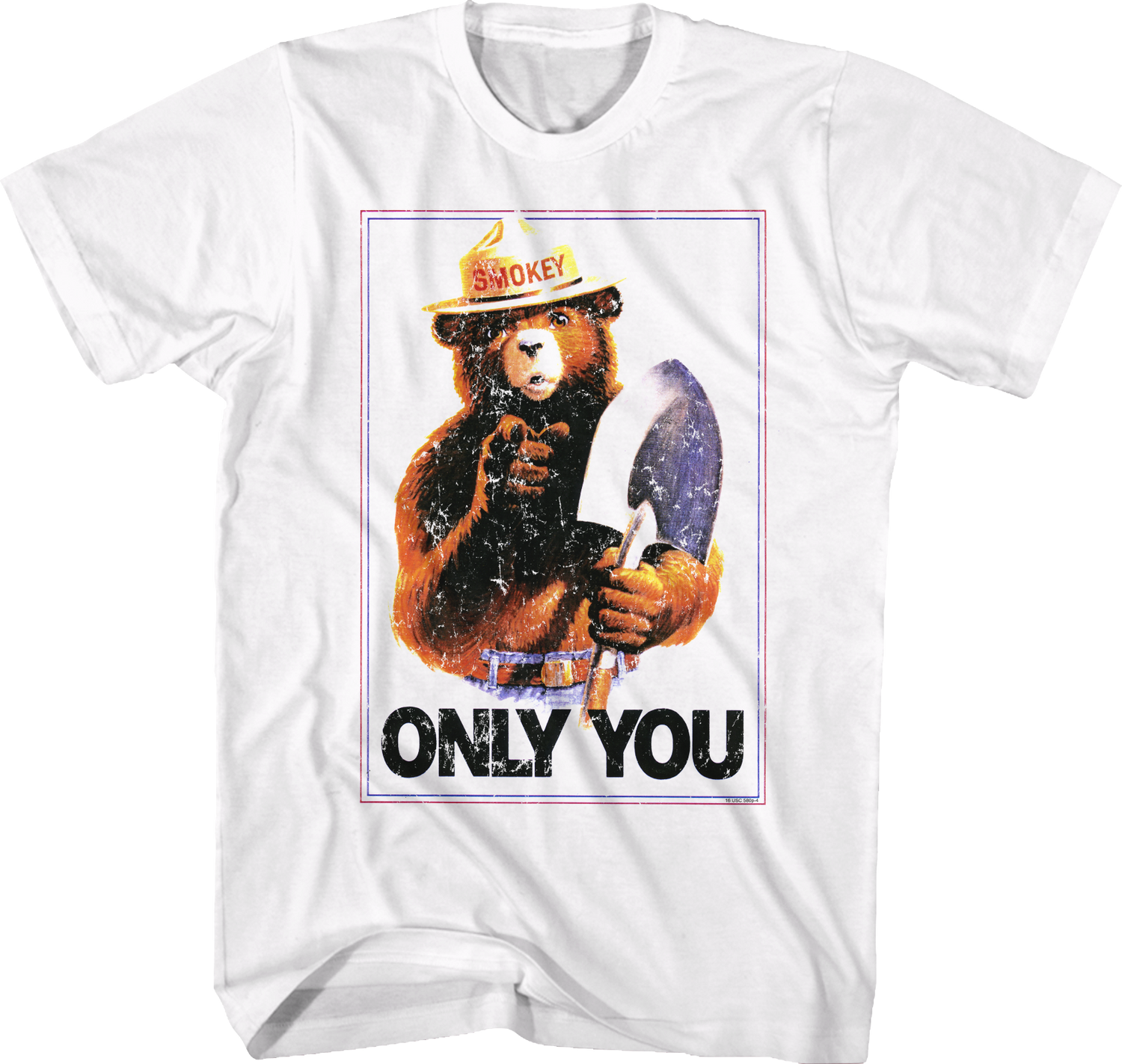 This Smokey Bear t-shirt features the advertising icon's popular poster that is based on Uncle Sam poster. The shirt reads Only You.