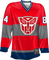 This jersey is designed to look and feel just like a real player's jersey! The jersey includes red, blue and grey colors to match Optimus Prime. The jersey shows the Autobots logo on the front and the name Prime on the back. This jersey is given the number 84 because the iconic Transformers animated series debuted in 1984.