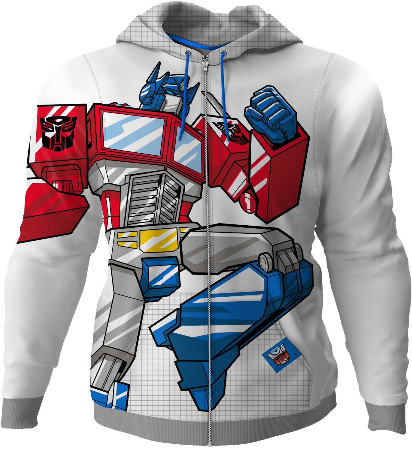 Optimus Prime is not only the leader of the Autobots, he is one of the most popular cartoon characters of all time. Everyone will immediately know that you are a fan when you wear this 80sTees.com exclusive Optimus Prime Transformers Premium Zippered Hoodie!