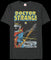 This Outer Space Doctor Strange T-Shirt shows the Sorcerer Supreme facing the expanse of space from an unknown planet. His name is shown in block letters and his Cloak of Levitation is billowing behind him and holding the Staff of Polar Power, which absorbs evil mystic energy. After learning the ways of the mystic arts from the Ancient One, Stephen Strange traveled through time, space, and dimension by using his vast powers.