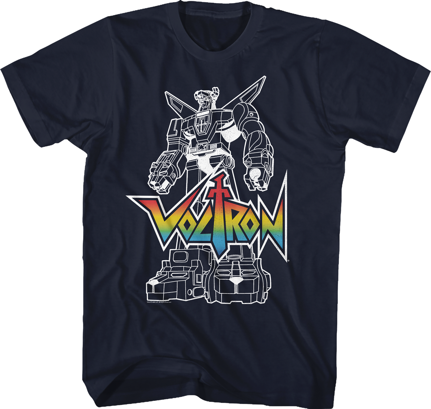 Let everyone know that you are a fan of the robot that is loved by good and feared by evil with this Outlined Defender of the Universe Voltron T-Shirt!