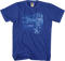 This shirt shows a blueprint for the Caterpillar P-5000 Powered Work Loader seen in the 1986 movie Aliens. In the movie, Weyland Corp developed the P-5000 Powerloader as a mechanized exoskeleton used for lifting heavy materials. Ripley ultimately used the clawed machine to defeat the Xenomorph Queen.