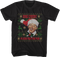This Bing Crosby t-shirt features an image of the legendary singer in an image that is designed to look like an ugly knit Christmas sweater. The image includes a Santa Claus hat on Crosby, snowflakes, and reindeer. The shirt reads "Pa-Rum Pum Pum Pum."