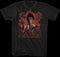This Scarface t-shirt features an image of Tony Montana posing in front of silhouettes of palm trees.