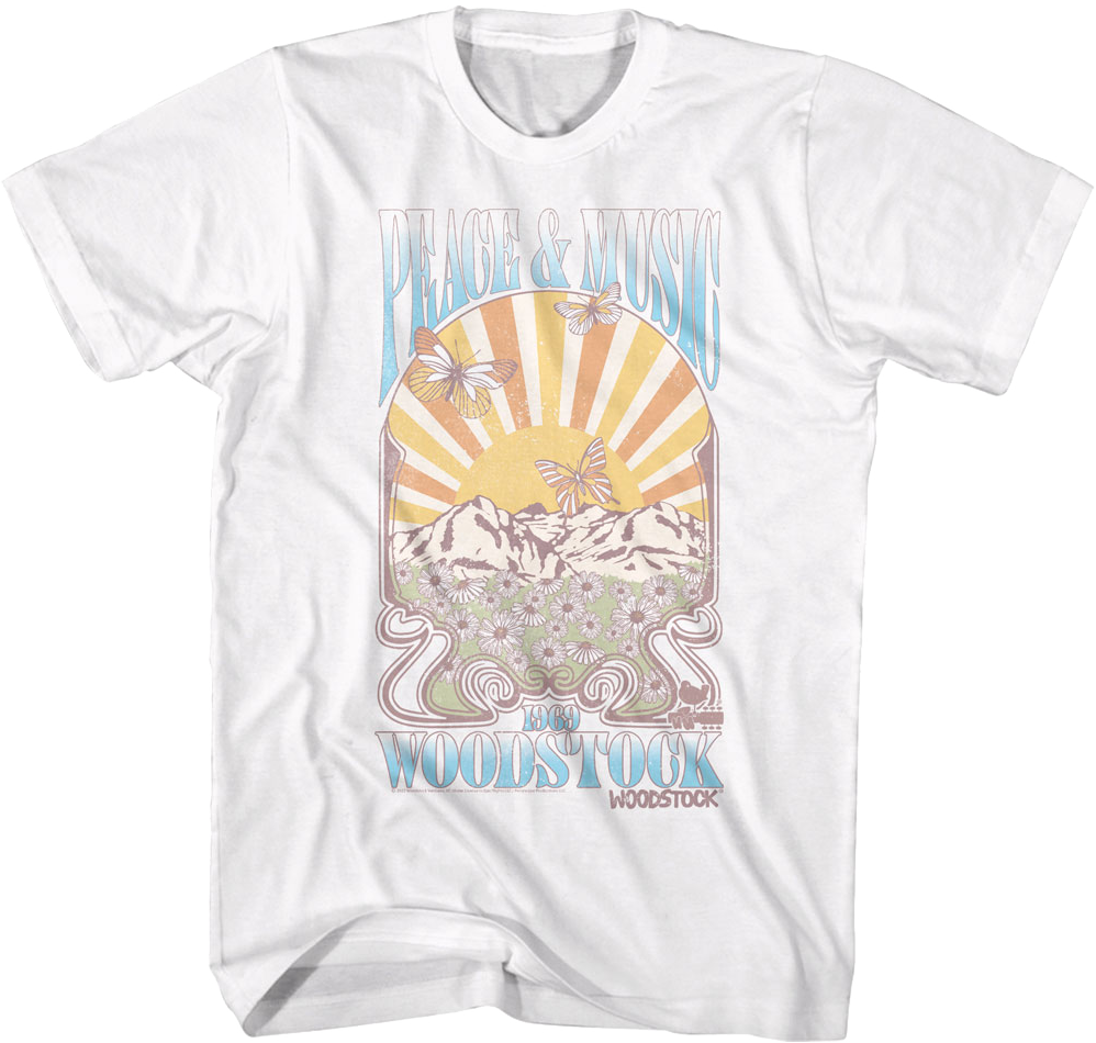 Show that you are a fan of the definitive festival of a generation when you wear this Peace & Music Woodstock T-Shirt!