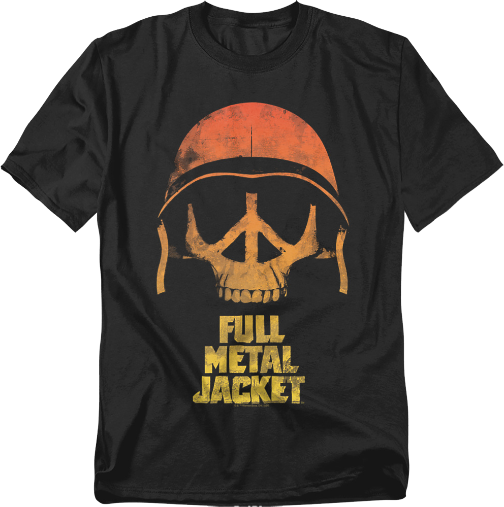 This Full Metal Jacket t-shirt shows a military helmet on a skull that includes the peace symbol.