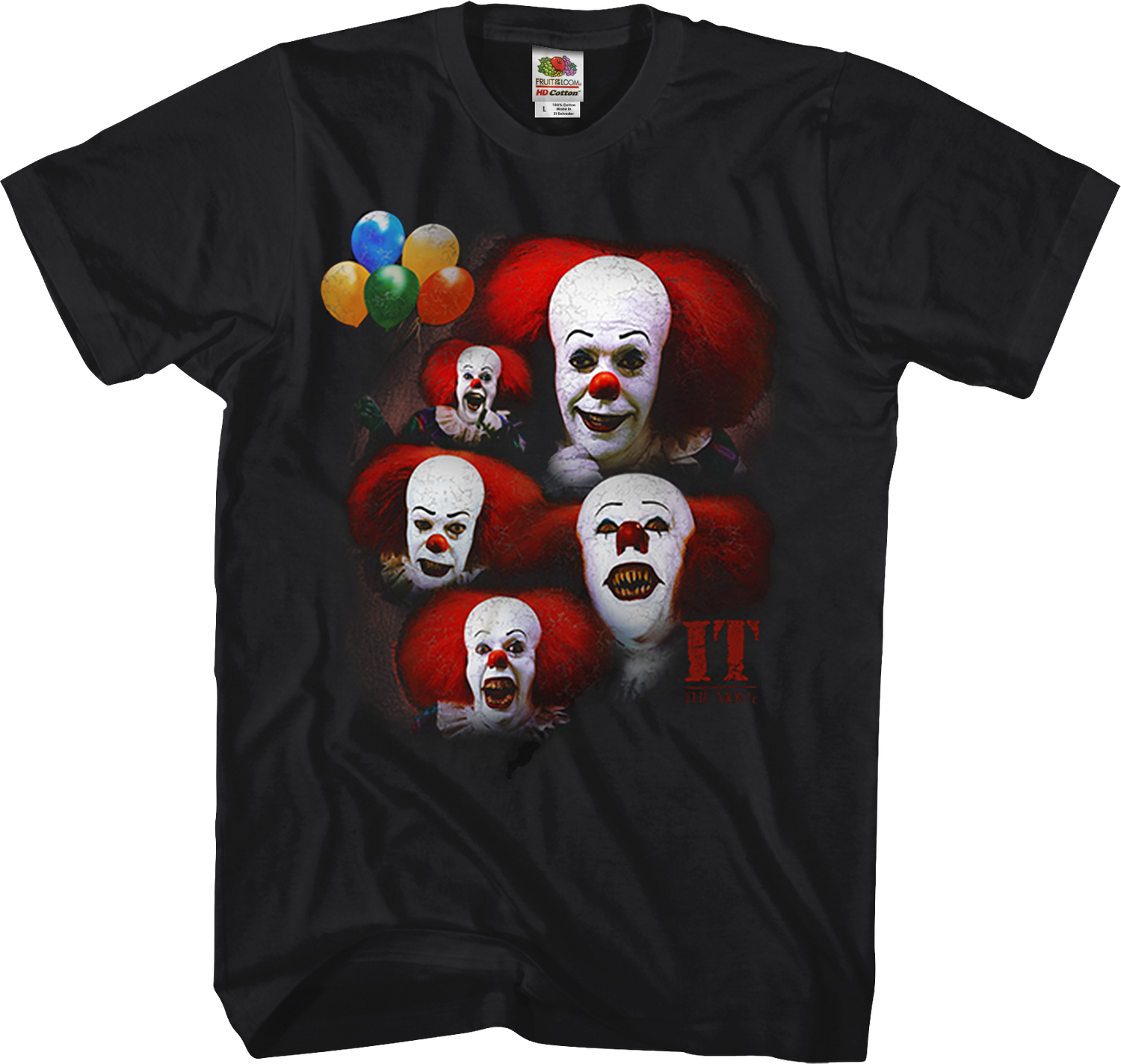 Pennywise The Dancing Clown is one of Stephen King's most iconic characters. The clown was brought to life in a brilliant performance by Tim Curry. Everyone will know you are a fan of the 1990 miniseries when you wear this Pennywise Clown Collage IT Shirt!
