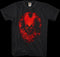 This IT shirt features an image of Pennywise the Dancing Clown's face showing through what looks like splattered blood.