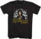 This Billy Joel t-shirt shows the legendary musician posing in front of piano keys. The image is surrounded by stars.