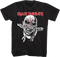 This Iron Maiden t-shirt features an image of the band's mascot Eddie with chains attached to a collar around his neck. This image appeared as the cover artwork for Iron Maiden's fourth album, Piece Of Mind.