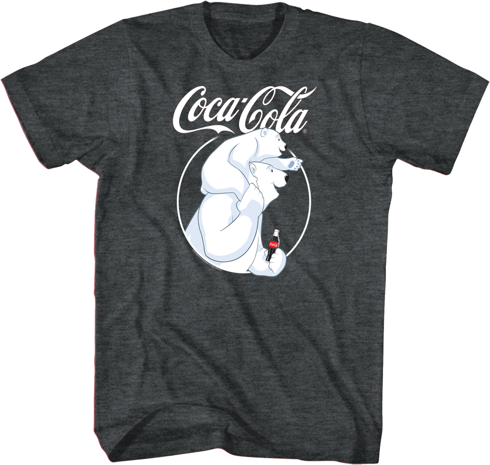 Coca-Cola first featured a polar bear in a French print advert in 1922, shown squirting cola from a bottle into the mouth of a thirsty sun. Polar bears started appearing in Coca-Cola commercials in 1993. These are regarded as some of the soft drink company's greatest commercials. Everyone will know you are a fan when you wear this Piggyback Polar Bears Coca-Cola T-Shirt!