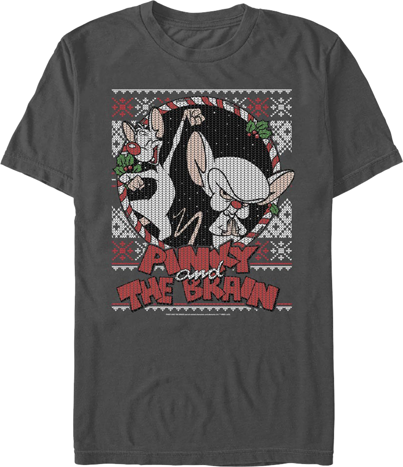 Everyone will immediate know you are a fan of the hilarious duo from Acme Laboratories when you wear this Pinky and The Brain Faux Ugly Christmas Sweater Animaniacs T-Shirt!