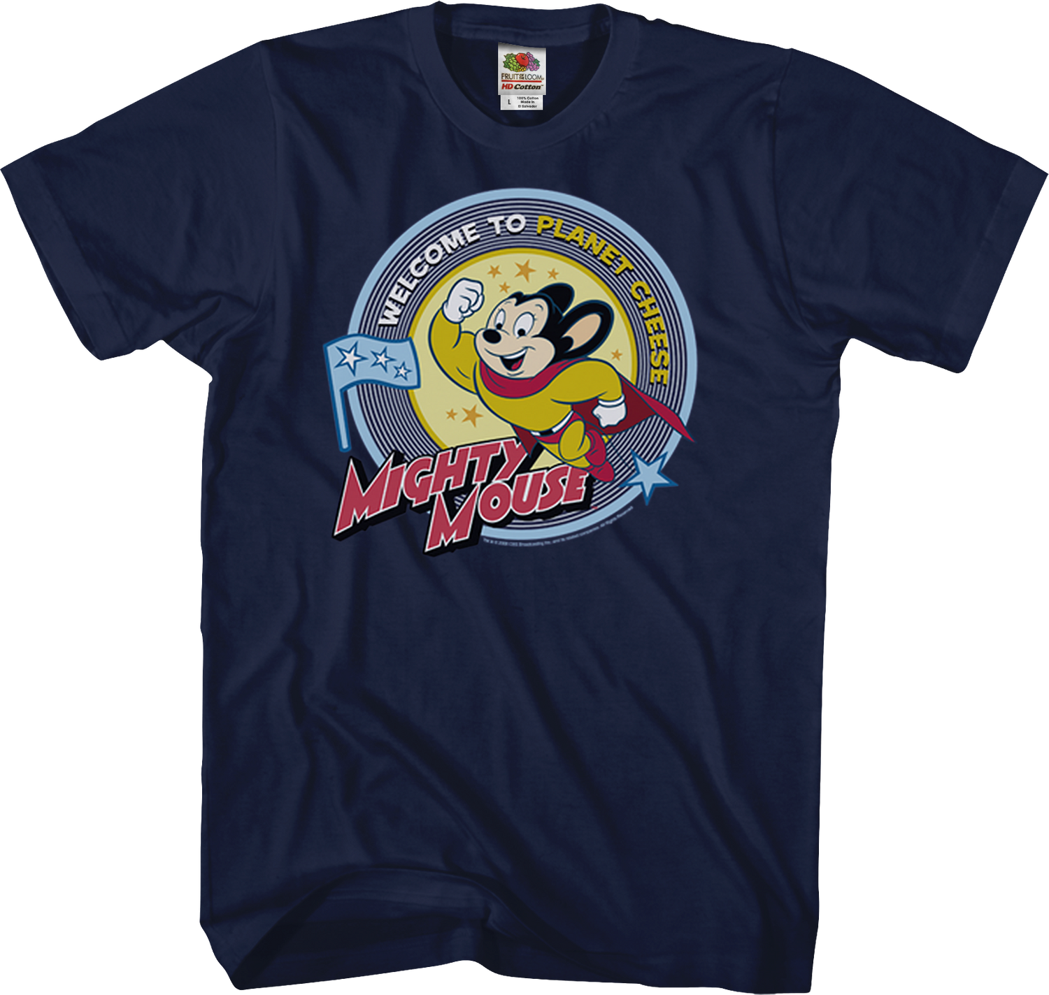 Show everyone who your favorite tiny hero is with this Planet Cheese Mighty Mouse T-Shirt.