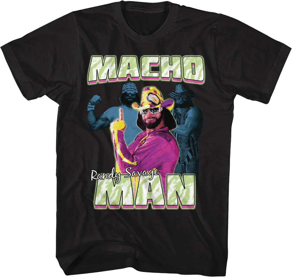 For any fan of the only professional wrestler who was truly the cream of the crop, this Posing Collage Macho Man Randy Savage T-Shirt is a must have!