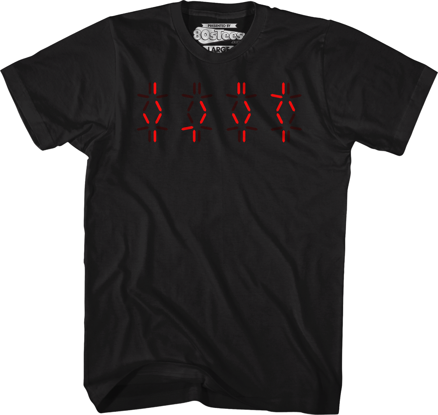 This 80sTees.com exclusive t-shirt shows the digital countdown that appears on a Predator's wrist gauntlet.