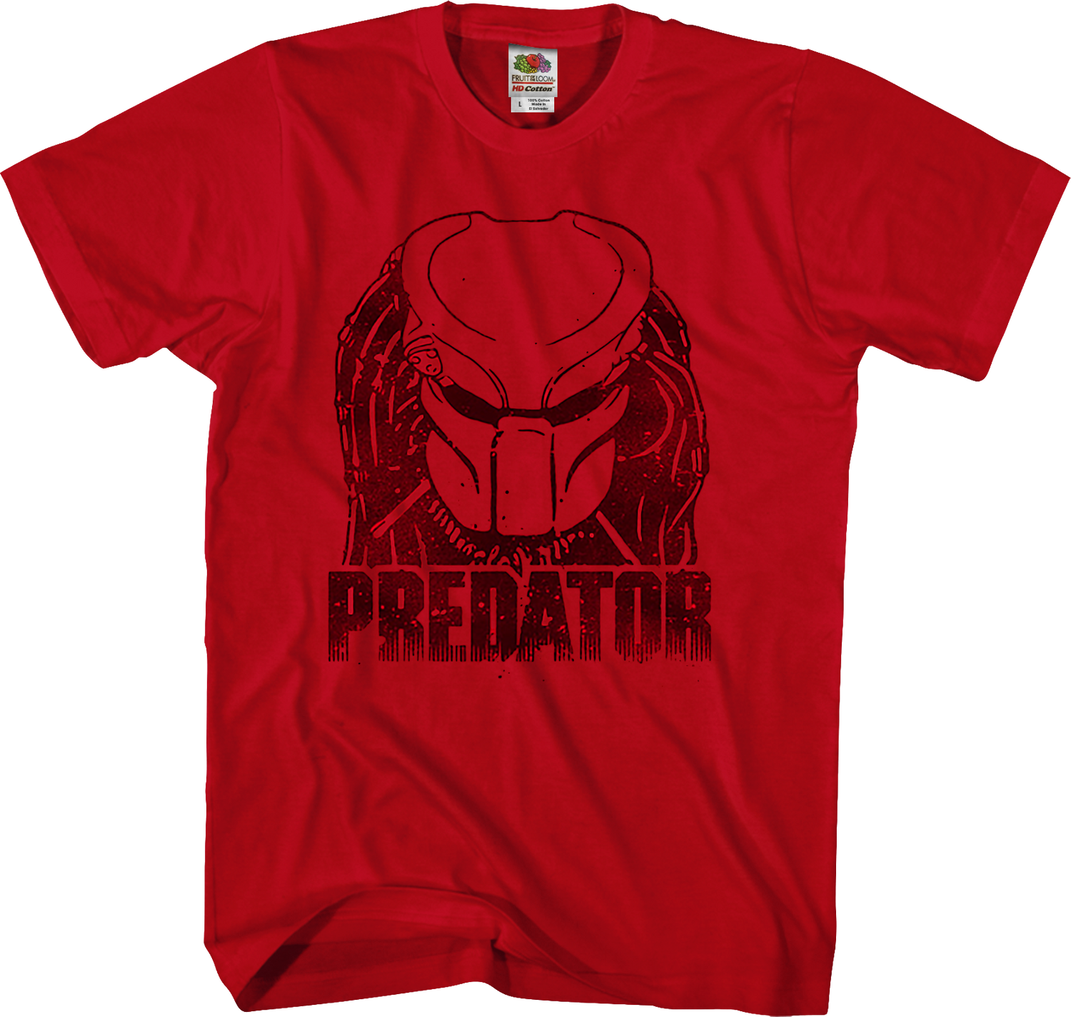 This Predator shirt shows the creature known as a Yautja from the hit 1987 Arnold Schwarzenegger movie. The shirt shows the Predator with its mask on, hiding its wide winged mouth, but the creature is still showing its trademark long hair on the shirt. Dutch might say that this is one ugly shirt. But, that's just part of the appeal to the creature. Show everyone that you are a fan of Predator with this frightening shirt.