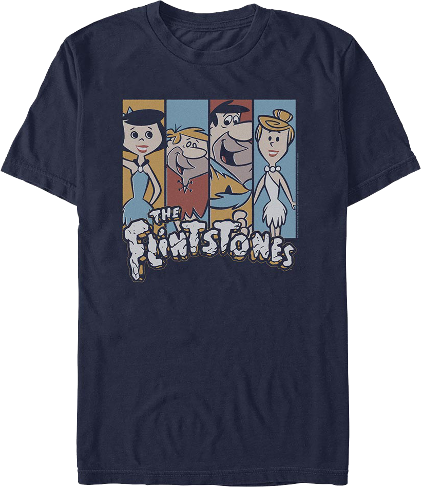 This Flintstones t-shirt features images of Betty Rubble, Barney Rubble, Fred Flintstone, and Wilma Flintstone.