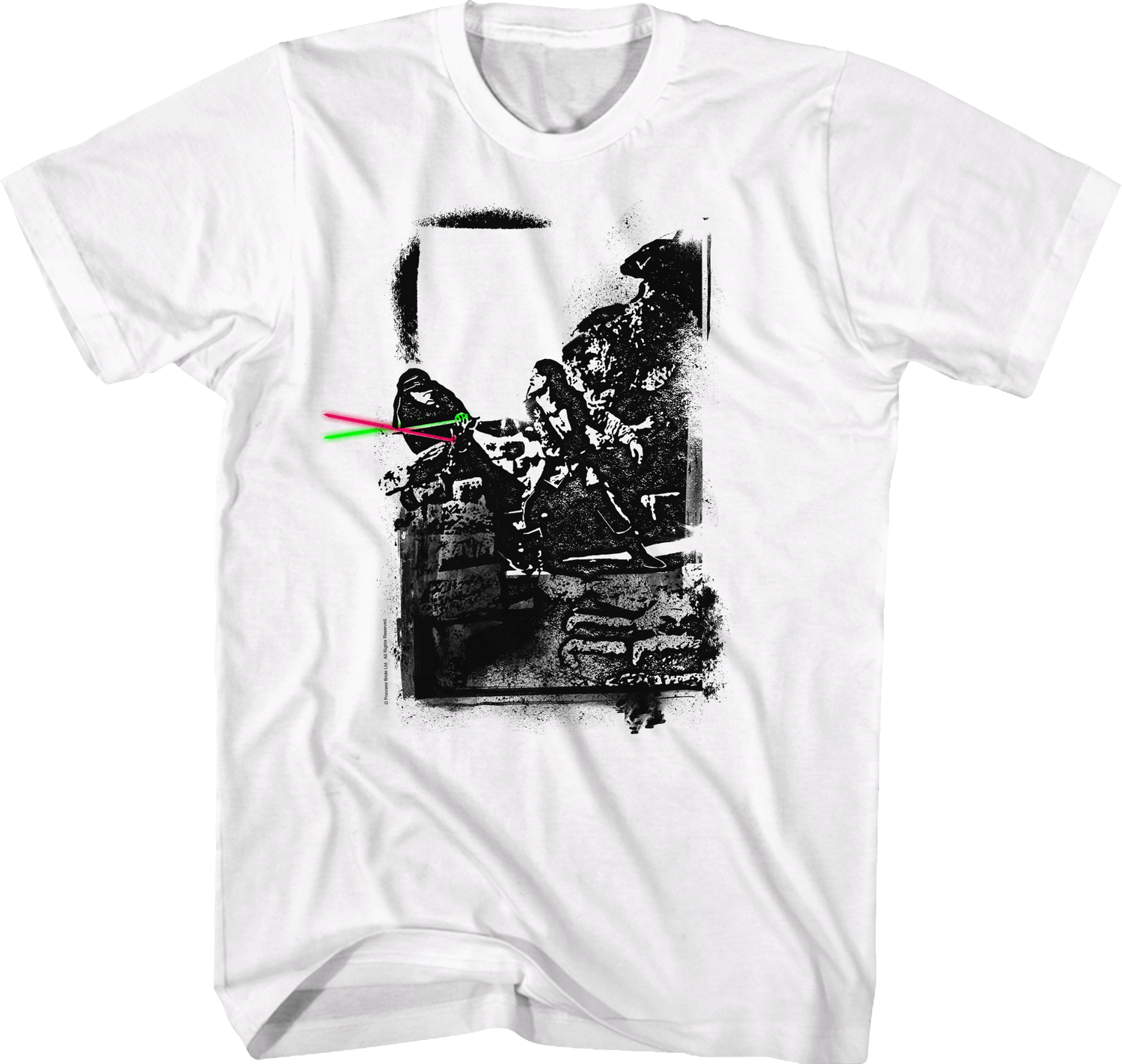 Like everything in life, the Princess Bride could be made better with one simple thing: light sabers. Think about it- when Inigo fights the six fingered man and says “You killed my father”, the six fingered man could say, “No, I AM your father!”. It wouldn't be true and Inigo would know that, but it would still be shocking. This shirt shows the Man in Black and Inigo Montoya in a lightsaber duel. Everyone will know you are a fan of these two characters from the 1987 classic Princess Bride when you wear this Princess Bride Lightsaber Shirt!