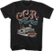This Creedence Clearwater Revival t-shirt shows the band's name and abbreviation over a river boat with an American flag on top.