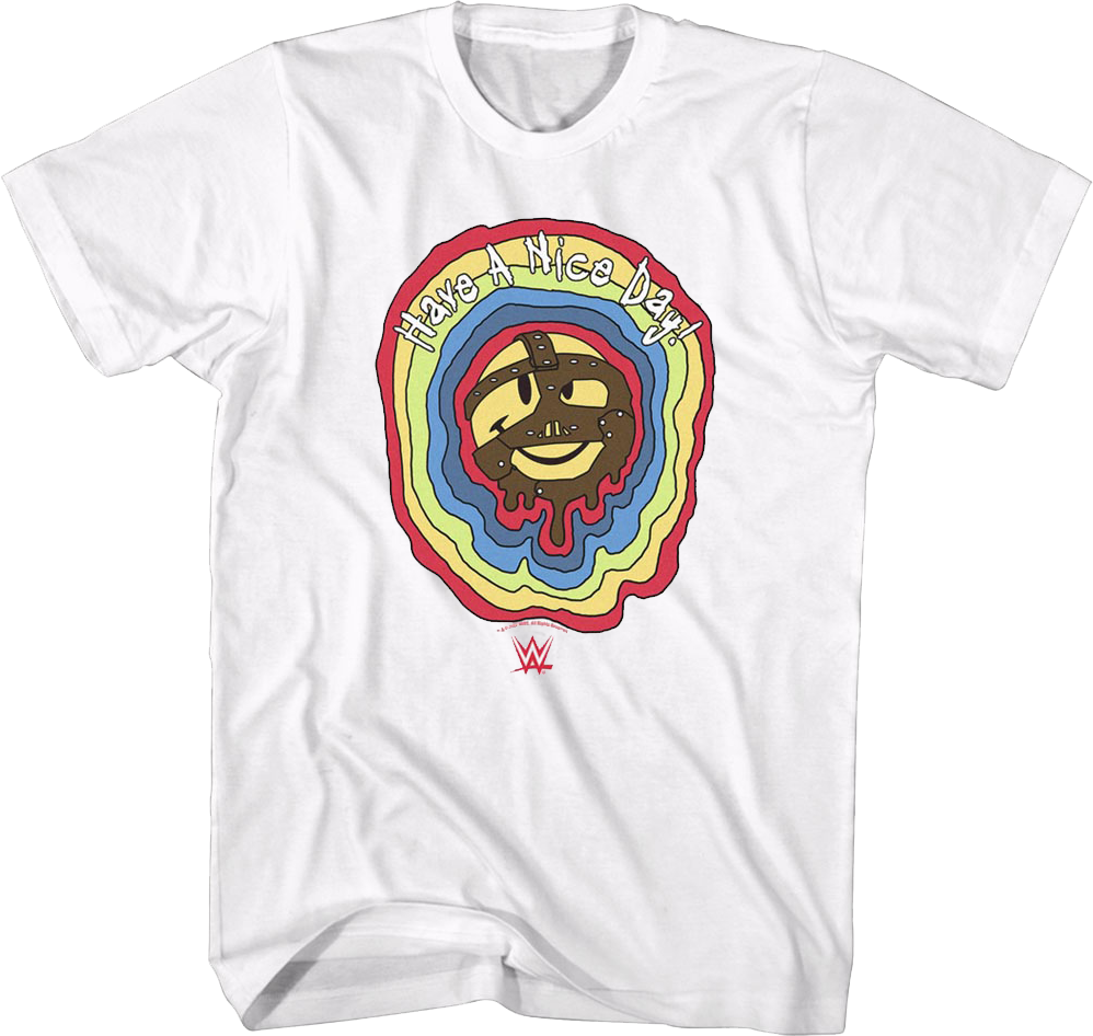 Mankind debuted in 1996 as a tortured soul who found pleasure in pain, and even more pleasure in delivering pain to his opponents. Mankind seemed maniacal and violent, but he found a soft spot in audiences around the world when he told them to have a nice day. Everyone will know you are a fan of the wrestling legend when you wear this Psychedelic Have A Nice Day Mankind T-Shirt!